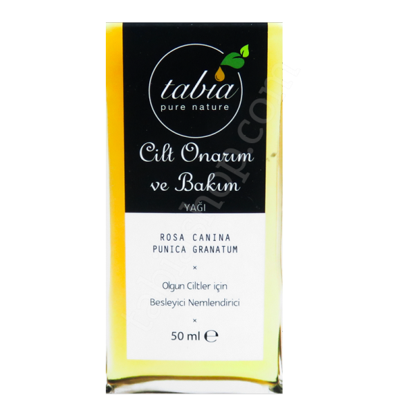 Tabia Cilt Onarım ve Bakım Yağı doğal retinoik asit içeren bilinen tek bitkisel yağ olan Kuşburnu Çekirdeği yağı ile yapısında konjuge yağ asitleri (CLA), punicic asit bulunduran ender yağlardan biri olan Nar Çekirdeği yağının birebir oranda karışımı ile hazırlanmıştır.